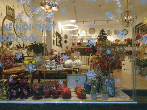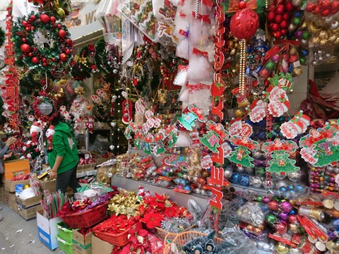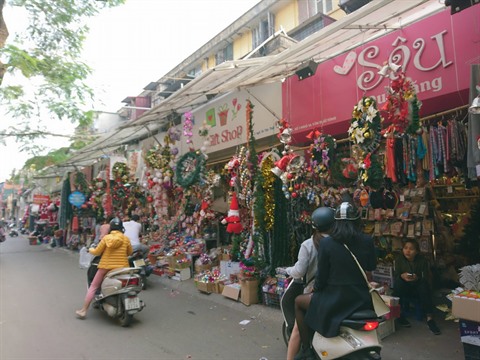 | Dans la rue Khuong Thuong (Hanoï), on peut chercher tous les ornements pour Noël. |