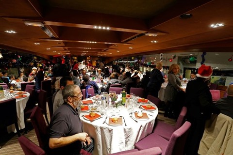 | Quelque 600 personnes invitées par le Secours catholique pour une soirée de fête lors d'une croisière sur la Seine à Paris, le 24 décembre |