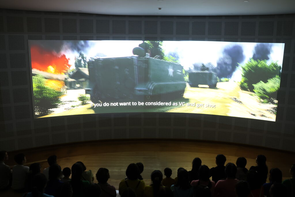 | Les visiteurs regardent les films 3D sur la bataille Cedar Falls. |