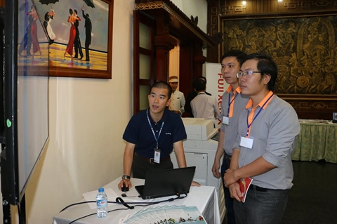 | En pleine séance de présentation du nouveau logiciel, à Hô Chi Minh-Ville. |