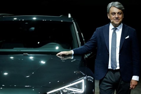 | Luca de Meo lors d'une présentation Seat en 2018 en Espagne. |