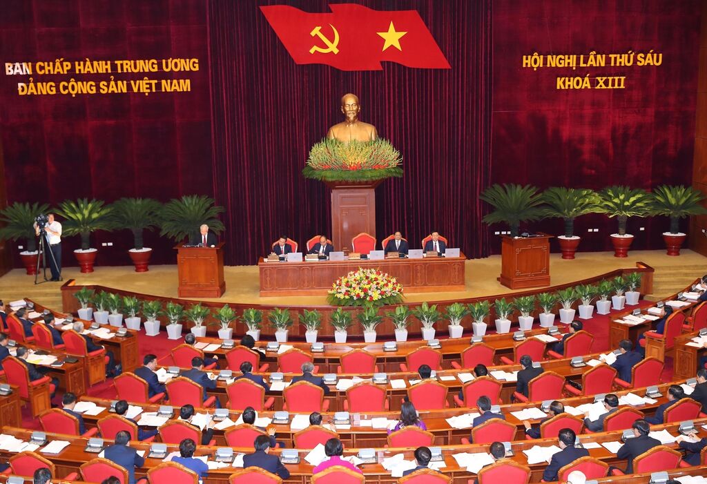 | Vue du 6e Plénum du Comité central du Parti du XIIIe mandat, à Hanoi, le 3 octobre 2022. |