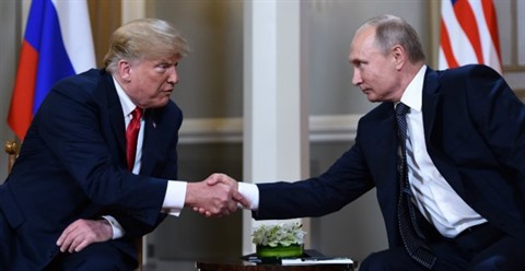 | Le président américain Donald Trump (gauche) et son homologue russe Vladimir Poutine à Helsinki, le 16 juillet dernier. |