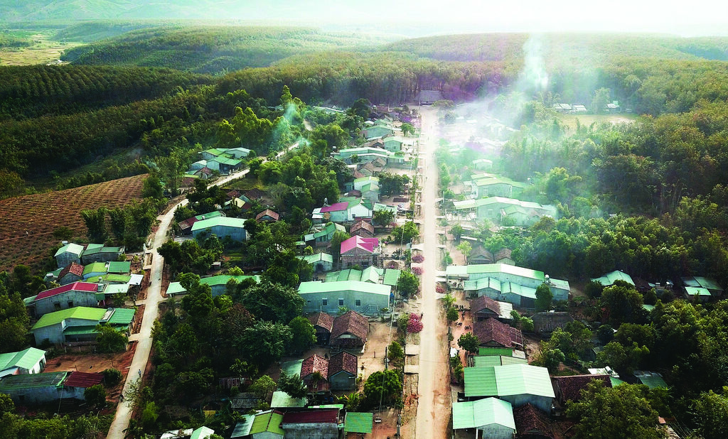 | Vue aérienne du Village de tourisme communautaire de Dak Rang. |