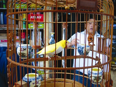 Dans le monde des oiseleurs, plus un oiseau présente un plumage bizarre, plus il vaut cher. En plus, cet oiseau n’a pas été capturé dans la nature, mais est né en captivité, d’où un caractère, lui aussi, en or. «Regardez, avec tout ce monde autour, il continue de chanter. Il n’a tout simplement pas peur de l’homme!», explique Tu.