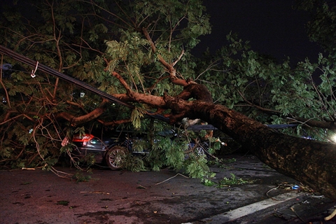 | De nombreux arbres ont été déracinés à la suite d'un violent orage qui s'est abattu le 13 juin sur la capitale Hanoi. |
