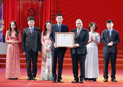 Au nom des dirigeants du Parti et de l'État, le Premier ministre Nguyên Xuân Phuc a présenté l'Ordre du travail de première classe au personnel du journal et l'Ordre du travail de troisième classe à son rédacteur en chef, Nguyên Ngoc Hiên, pour sa performance exceptionnelle de la période 2014. -2018.