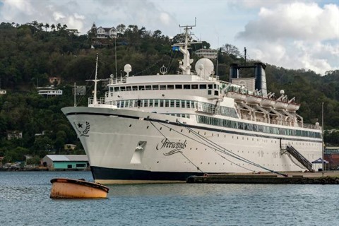 Le Freewinds restait jeudi 2 mai en fin de journée à quai au terminal de Pointe Séraphine dans le port de la capitale Castries, a constaté un photographe. Un seul homme a été vu sur un pont, mais aucune autre âme n'était visible ni à bord, ni sur le quai.