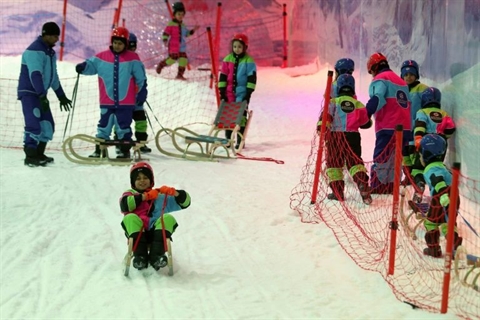 La "snow City", une salle couverte de 5.000 mètres carrés, ne comporte pas de véritables pistes de ski mais ses modestes dénivelés offrent le plaisir de la neige sur ces terres en grande partie désertiques et chaudes.