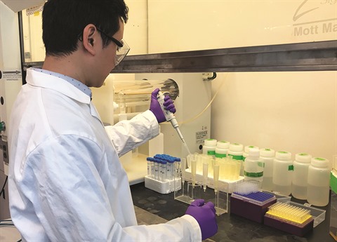 | Dang Duc Huy dans son laboratoire à l'Université de Trent au Canada. |