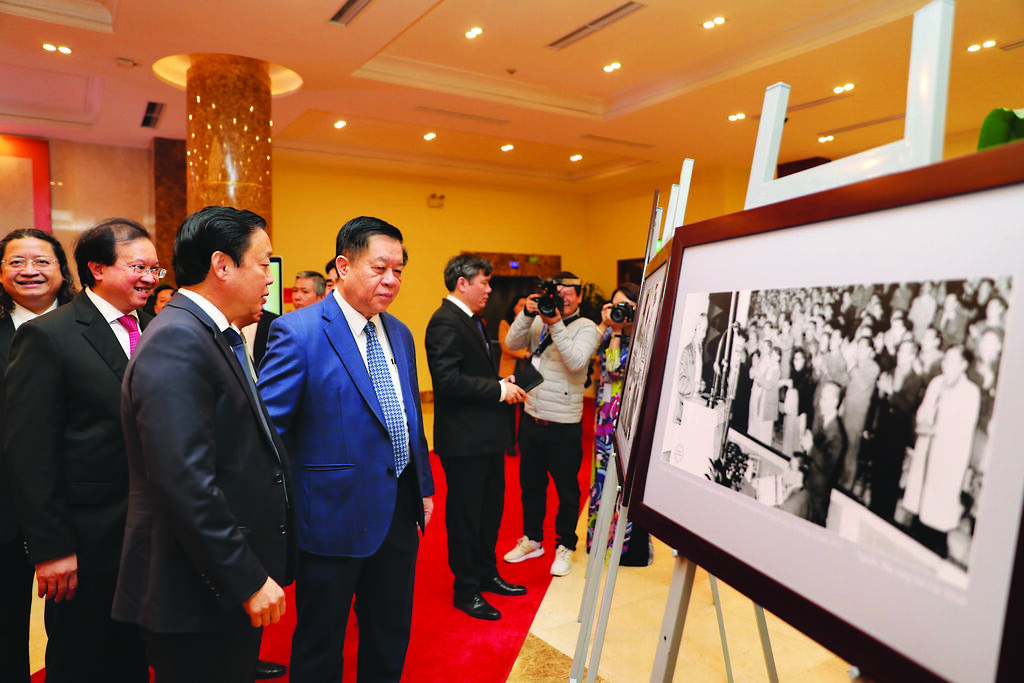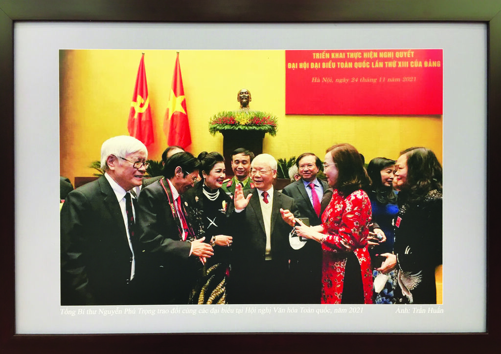 Les œuvres se scindent en deux parties : photos documentaires et photos d’art. La première comprend principalement des clichés en noir et blanc pris et archivés depuis 1945. Parmi lesquels, une copie du texte intégral du Programme de la culture vietnamienne publié dans le numéro 1, en novembre 1945, du magazine Tiên Phong (Avant-Garde), des photos sur les conférences culturelles nationales en 1946, 1948 et 2021, des images de l’Oncle Hô et des dirigeants du Parti et de l’État lors d’activités culturelles et artistiques.