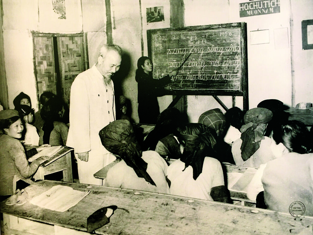 | L’Oncle Hô visite une classe à Luong Yên, Hanoï. |