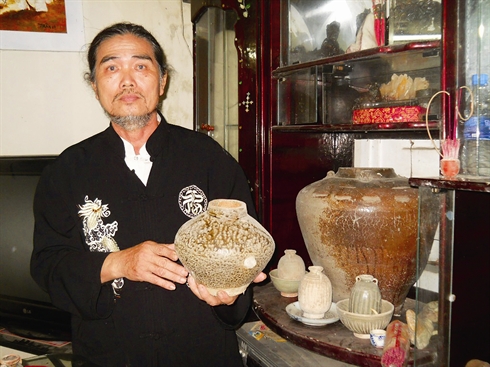 | Luong Thành Chung présente sa collection d’objets anciens. |