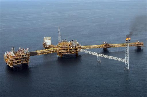 | Une plateforme pétrolière dans le Delta du Niger. |