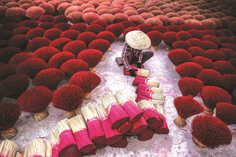 | "Making encense" (Fabrication d’encens), prise dans un village artisanal vietnamien, a été largement vue et appréciée par la communauté photographique mondiale. |