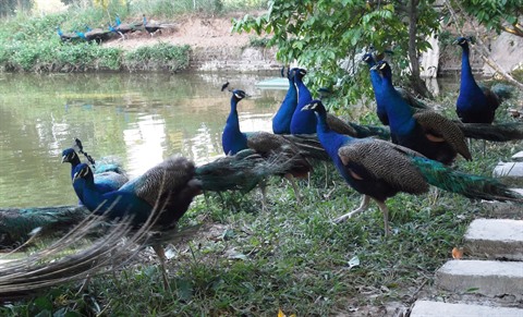 | Les paons multicolors se promènent en toute liberté dans la ferme à Dông My, district de Thanh Tri, en banlieue de Hanoï. |