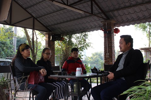| Une rencontre entre Trân Nhu Giap (droite) et des visiteurs dans sa ferme. |