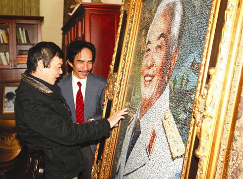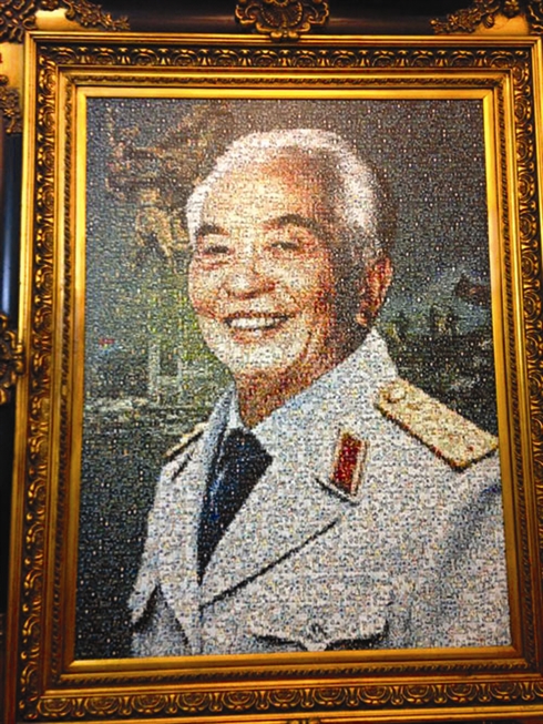 Actuellement, le tableau trône dans le salon de la maison du général, au 30, rue Hoàng Diêu, Hanoi. «Je suis vraiment ému de voir ce portrait chez lui», a déclaré le peintre qui, à la nouvelle de son décès, est revenu de la province de Dông Nai à Hanoi pour lui rendre hommage en son domicile de la rue Hoàng Diêu. Le portrait du général Vo Nguyên Giap est le deuxième ouvrage de ce type réalisé par le peintre Nguyên Minh. Le premier était celui du Président Hô Chi Minh, assemblé à partir de 5.000 photos noir et blanc.