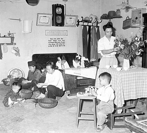 | Une famille hanoïenne prépare le Têt traditionnel en 1959. |