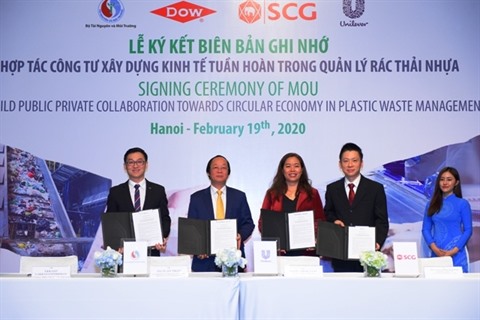 "Notre ministère, en collaboration avec les entreprises, formera un groupe de travail commun pour matérialiser ce protocole d’accord en s’appuyant sur plusieurs missions prioritaires : améliorer la perception communautaire sur les déchets plastiques et le tri des déchets, développer l’innovation technologique et le dialogue dans ce domaine et élaborer une politique d’assistance à l’économie circulaire dans la gestion des déchets plastiques au Vietnam", indique-t-il.