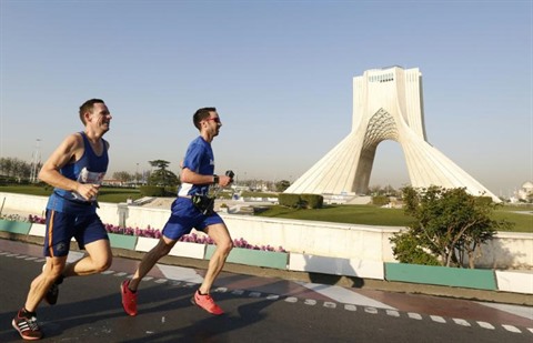 | Des coureurs participent au premier marathon international à Téhéran, en Iran, le 7 avril |