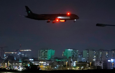 | Un avion cargo exploité par Etihad Airways, transportant des secours médicaux pour les Palestiniens, se prépare à atterrir à l’aéroport israélien Ben Gourion, près de Tel Aviv, le 9 juin. |
