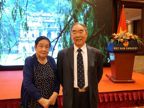| Le professeur Gu Yuanyang et son épouse lors de la cérémonie de célébration de la Fête nationale vietnamienne à Pékin, en Chine. |