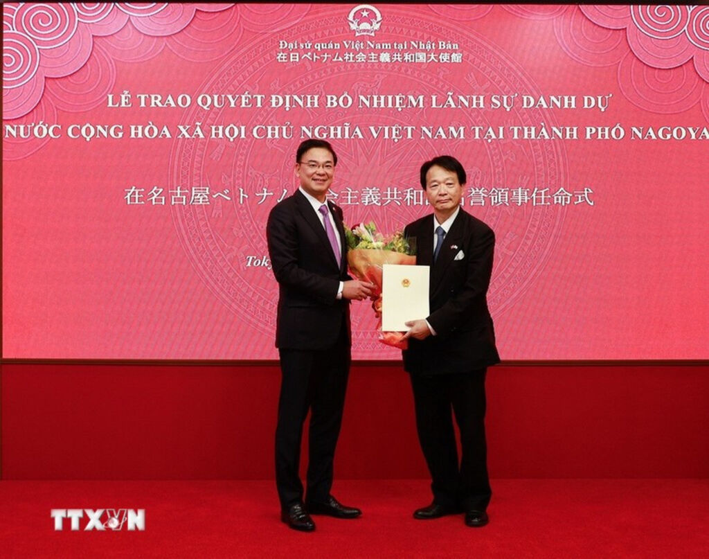 La décision de nomination du consul honoraire du Vietnam à Nagoya, couvrant l’ensemble de la préfecture d’Aichi, est valable pour une durée de trois ans. Cette décision a été remise par l’ambassadeur du Vietnam au Japon, Pham Quang Hiêu, mandaté par la direction du ministère vietnamien des Affaires étrangères, au professeur et docteur Natsume Nagato.