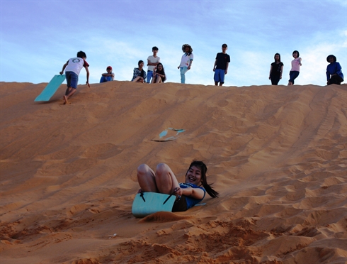 | Les touristes s’amusent sur la colline Rouge, dans la ville de Phan Thiêt, province de Binh Thuân (Centre). |