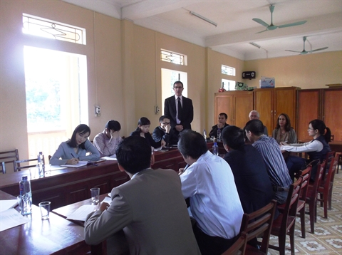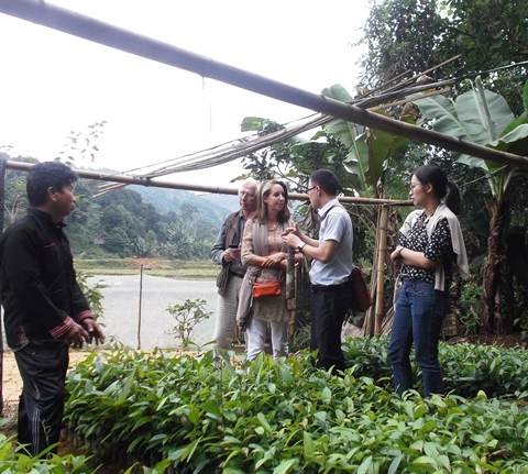| Stéphane Passeri (debout) lors d’une séance de travail, le 3 novembre dans la commune de Viên Son où est cultivée la cannelle de Van Yên, à Yên Bai (Nord). Photo : Thùy Trang/CVN |