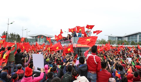 | Les supporters vietnamiens accueillent dans une ambiance de liesse le retour de "l’équipe rouge" dans la capitale, le 28 janvier. |