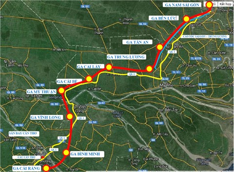 Selon une décision du ministère des Communications et des Transports datée du 27 août 2013, cette ligne de plus de 173 km de long comprendrait 14 stations. Cependant, sa longueur devra être réduite à plus de 135 km, selon la proposion de l'Institut des sciences et des technologies Phuong Nam et la Compagnie de consultation sur les transports du Sud. Cette ligne, d’un montant d'investissement prévisionnel de 5 milliards de dollars, permettra aux trains de circuler à 200 km/h, soit 45 minutes de Hô Chi Minh-Ville à Cân Tho.