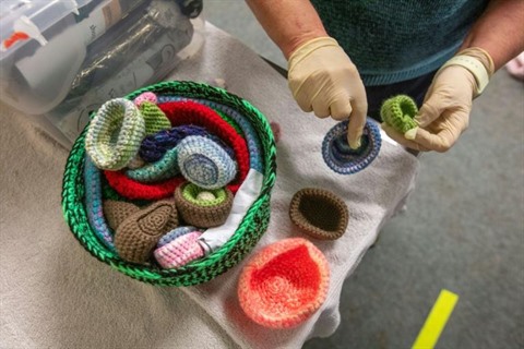 | Un volontaire trie des nids de tricot destinés aux oiseaux blessés près de Navan (Irlande) le 18 février 2021. |