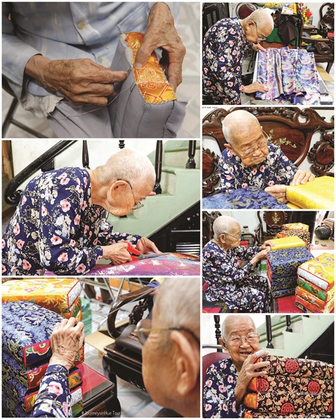 Née à la fin de la dynastie des Nguyên, cette dame est l’arrière-petite-fille de l’empereur Minh Mang. En 1955, elle a eu la chance de rencontrer la fameuse impératrice douairière Tu Cung (mère du dernier empereur Bao Dai). Un jour, cette dernière l’a amenée au Temple de la Littérature (un lieu spirituel dans la Citadelle de Huê) et lui a exprimé son désir de réparer quelques coussins d’accoudoir endommagés sur l’autel. C’est exactement à partir de ce moment qu’elle a commencé à s’intéresser à ce coussin royal. La vieille dame a noué un grand amour pour ce travail et son talent professionnel n’a cessé de croître.