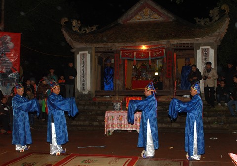 Le premier chant du coq de minuit annonce enfin l’heure Ty attendue pour le rite ésotérique. Le temple en bois, nouvellement reconstruit avec l’aide du Fonds culturel Danemark-Vietnam, est bondé. Outre les villageois, des gens venant de Hanoï, des touristes, des étudiants, des chercheurs, des ethnographes… Des dizaines de caméras et d’appareils photographiques sont braqués sur l’autel. Le rite ésotérique, oublié depuis un demi-siècle et ressuscité une ou deux fois au cours de la dernière décennie, connaît une résurrection spectaculaire cette année.