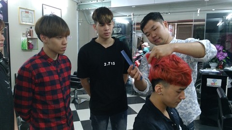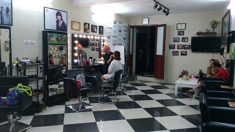 | Dans le salon de coiffure Thành Nguyên, à Hanoï. |