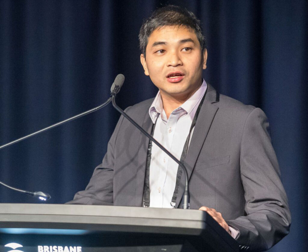 | Le Dr. Pham Minh Thông lors d’une conférence internationale à Brisbane, en Australie, en 2019. |