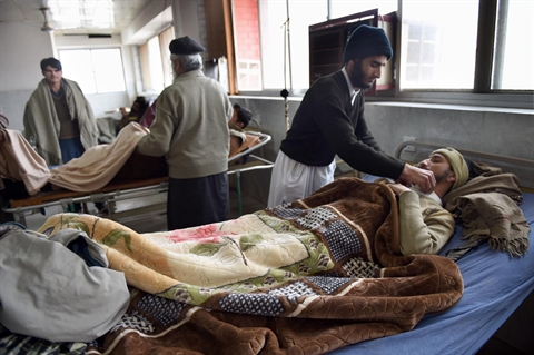 | Des victimes d'un séisme qui a frappé le nord-est de l'Afghanistan près de la frontière avec le Pakistan et le Tadjikistan, le 26 décembre à Peshawar. |