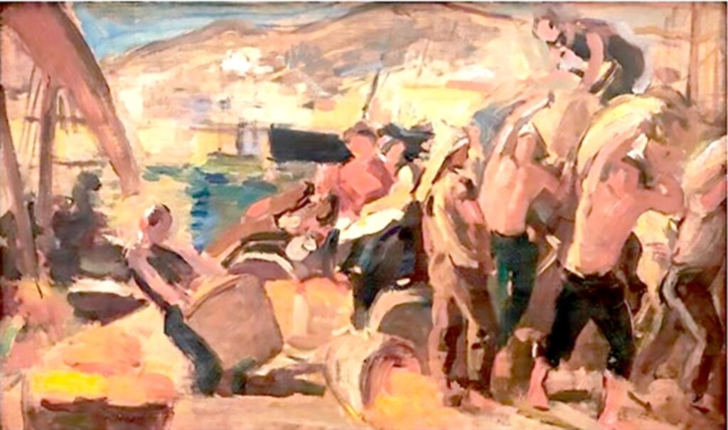 | "Les Dockers", huile sur toile, 1902-1904, de Victor Tardieu, premier directeur de l’Université des beaux-arts du Vietnam. |