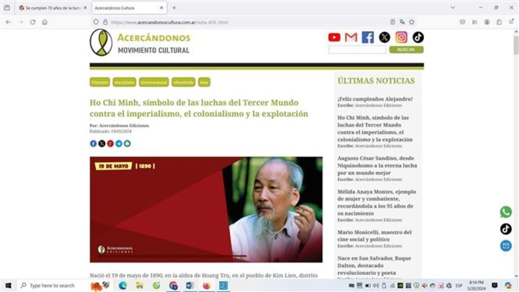 L'article affirme que le Président Hô Chi Minh devint un symbole des peuples opprimés luttant contre l'impérialisme, le colonialisme et l'exploitation. Son nom dépasse les frontières du Vietnam et figure parmi les dirigeants du prolétariat dans le monde.