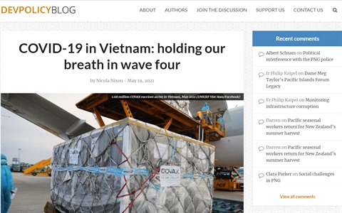 Lorsque la quatrième vague de COVID-19 s'est éclaté, le Vietnam a immédiatement appliqué une série de mesures telles que la distanciation sociale et les restrictions de déplacement dans les points chauds de la pandémie. Le comportement de ne pas porter de masque lors des sorties a été sanctionné. Pendant ce temps, la plupart des magasins et des entreprises restent ouverts. Devpolicy.org a affirmé que cette fois, le calme et l'ordre du système ont engendré la confiance au Vietnam.