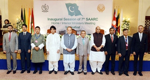 | Une photo des ministres de l'Intérieur de l'Association sud-asiatique lors d'une conférence pour lutter contre le terrorisme, la cybercriminalité et le trafic de drogue, le 4 août au Pakistan. |