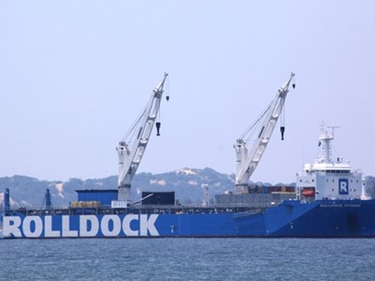 | Le navire-grue hollandais Rolldock Sea transportant le sous-marin vietnamien baptisé "Khánh Hoà". |