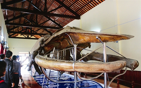 | Un squelette de baleine de 22 m est exposé à Van Thuy Tu. |