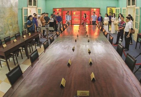 | Touristes visitant le vestige révolutionnaire de la maison D67. |