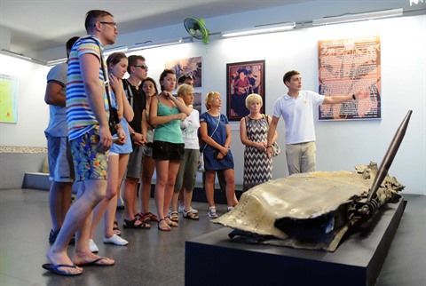 | Des touristes étrangers en visite du Musée des vestiges de guerre de Hô Chi Minh-Ville. |