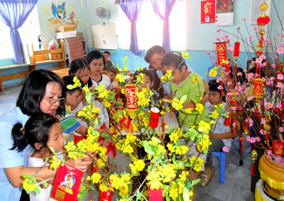 Afin de réduire la tristesse de ces enfants, les centres organisent souvent des activités à l’occasion du Têt. Dinh Huu Tuyên, directeur du Village des pionniers de Thu Duc, souligne que «grâce aux assistances de la municipalité, le village organise souvent une foire printanière avec beaucoup d’activités tels que confection de banh chung, jeux folkloriques, programmes de musique...»