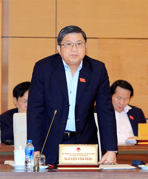 | Le chef de la Commission économique de l’Assemblée nationale, Nguyên Van Giàu prend la parole, lors d'une 36e session du Comité permanent de l’Assemblée nationale sur le projet de loi sur les statistiques, tenue 11 mars, à Hanoi. |
