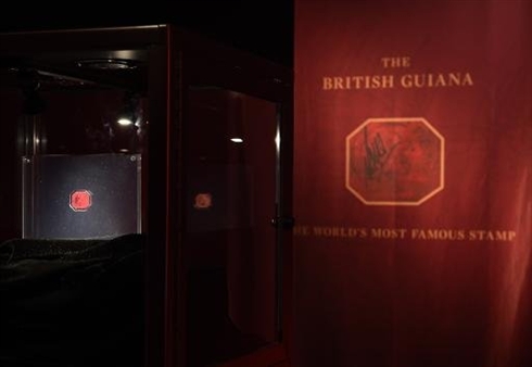 | Le One-Cent Magenta présenté chez Sotheby's, à New York, le 17 juin. |