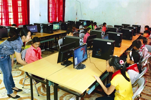 | Un cours d’informatique dans une école primaire de la province de Lào Cai. |